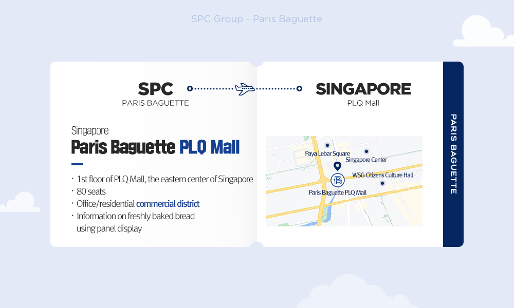 At the entrance of the PLQ is installed a panel display with information such as ‘freshly-baked bread’ and ‘menus just made in the kitchen’ for the Paris Baguette PLQ Mall branch. Thanks to this, customers can conveniently check the freshest items for purchase. The freshness of products was further emphasized by allowing customers to pick their own bread using a tray and tongs. The store interior emits a warm and comfortable ambiance by making full use of Paris Baguette’s brand colors, navy blue and gold. Based on the good performance of the PLQ Mall branch, SPC Group plans to open new stores in Singapore in the second half of this year to approach local customers with even better tasting products.