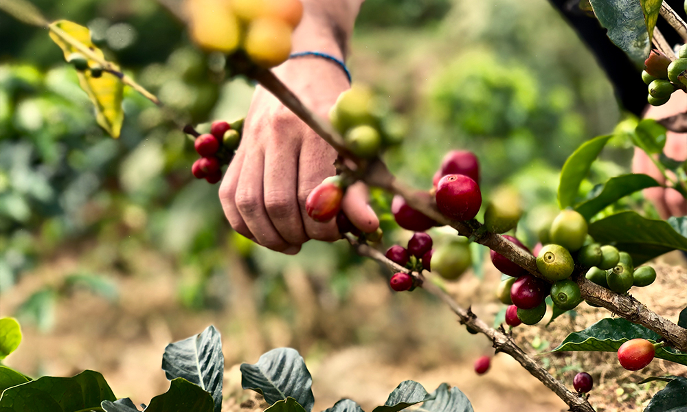 커피 체리를 수확하는 모습
