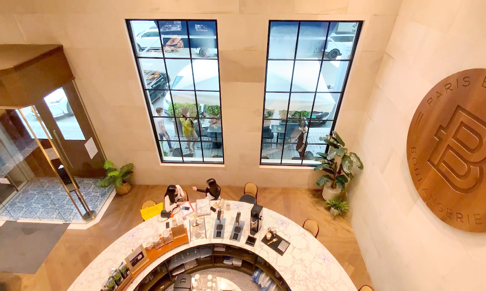 巴黎贝甜Boeng Keng Kang店是进军柬埔寨的首家店铺,从建筑设计开始就倾注了大量的心血。这是为传达巴黎贝甜原始的品牌概念,整体面积约390㎡的3层独栋的旗舰店。内部包括开放式厨房在内,一层共有71个座位,并且通过高层高展现卓越的开阔感。二层由可眺望下层的夹层(mezzanine)建筑方式构成,将空间感最大化。特别是以采用整块玻璃设计的墙面,营造出欧式庭院的温室般的温馨氛围。这是现有柬埔寨国内从未见过的优秀建筑外观和室内装修,备受本地人的喜爱,期待它能充分发挥柬埔寨的地标性作用。
