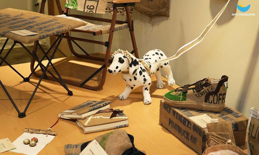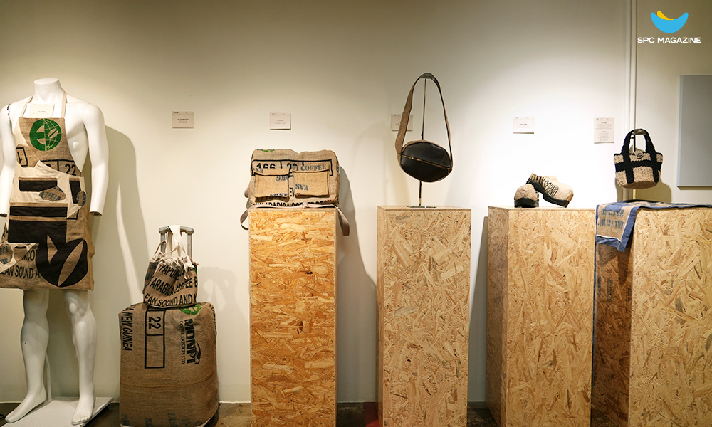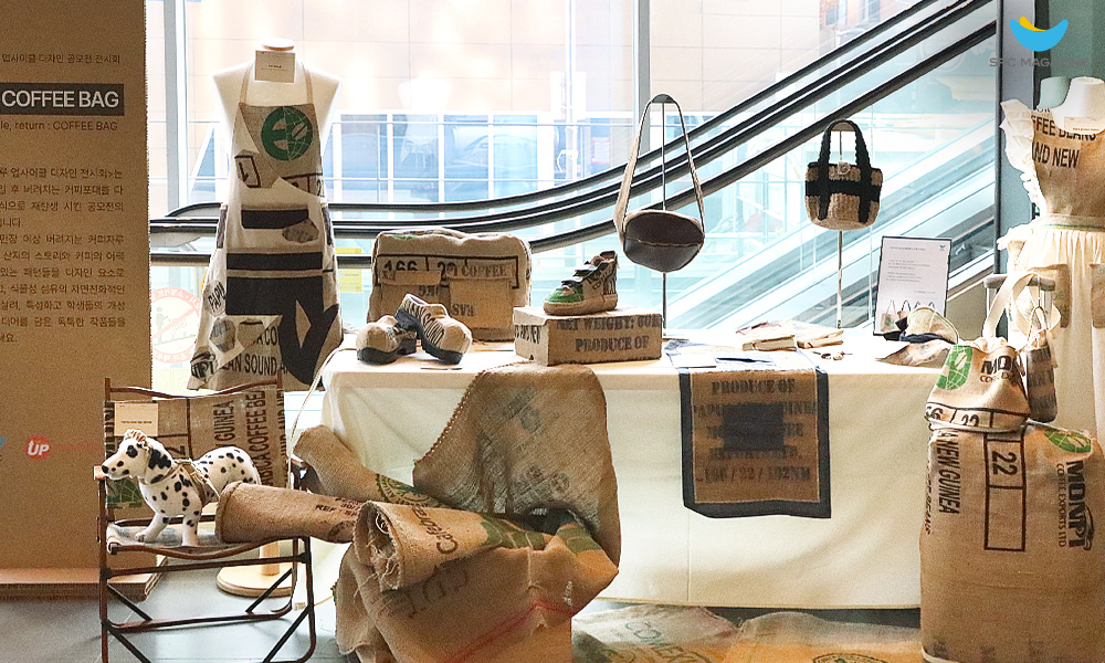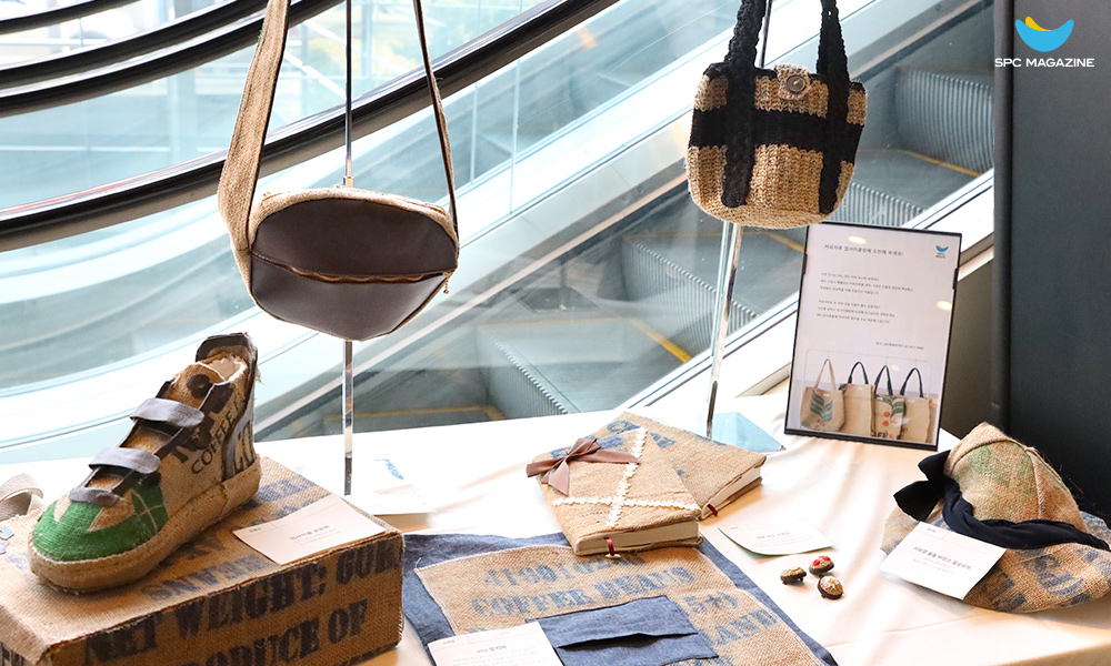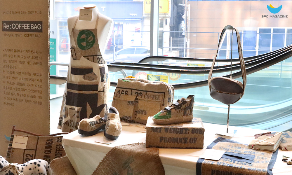 SPC 1945에 전시된 ‘SPC 커피자루 업사이클 디자인 공모전’ 출품작들