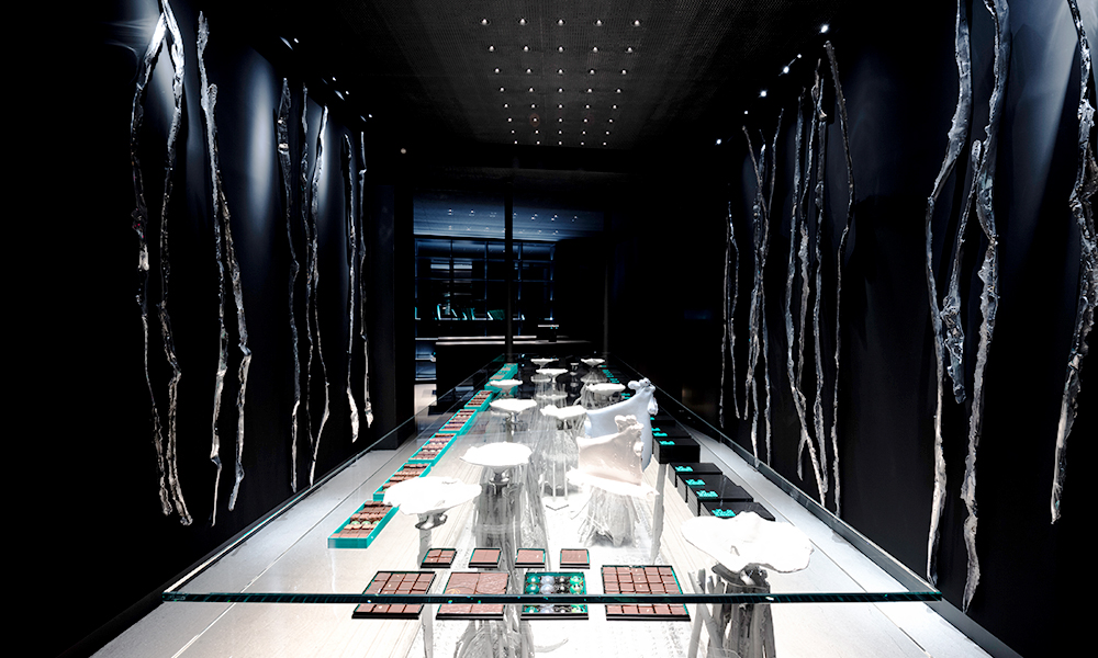 초콜릿으로 만든 작품이 전시되어 있는 패트릭 로저의 부티크
