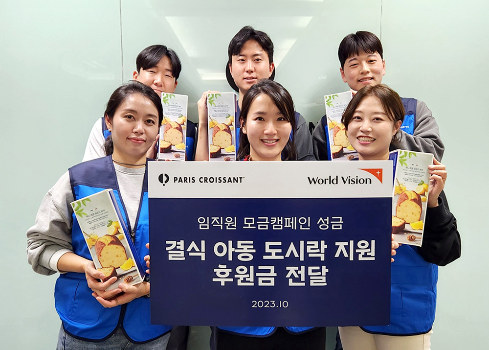 이번 행사는 ㈜파리크라상 820여명의 임직원이 1만원씩 참여해 뜻을 모았으며, 모금된 기부금은 10월 말 월드비전을 통해 저소득층 결식아동의 특식 지원을 위한 사업에 사용될 예정이다. 기부에 참여한 구성원들은 ‘허니레몬파운드케익’을 선물로 받게 된다.