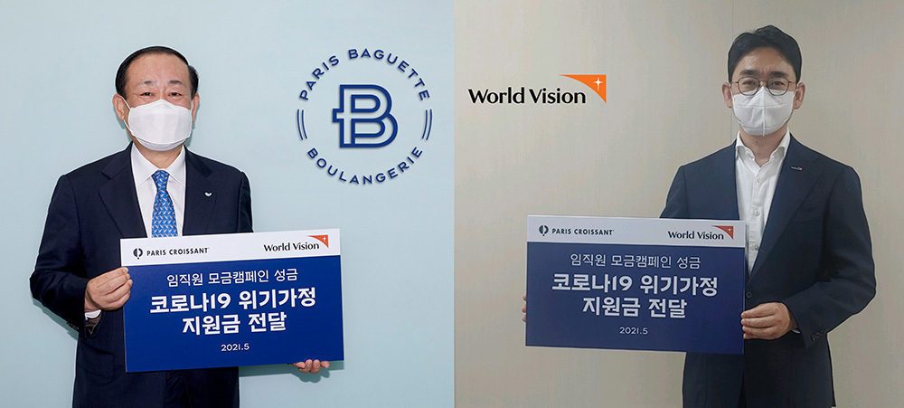 한편, ㈜파리크라상은 매년 월드비전을 통해 다양한 사회공헌활동을 이어오고 있다. 지난해 ‘기부 앤 테이크’ 캠페인을 통해 모금된 기부금을 코로나19로 인해 어려움을 겪고 있는 저소득가정 아동을 위한 호흡기질환 예방키트, 긴급지원금 등으로 전달한 바 있다.