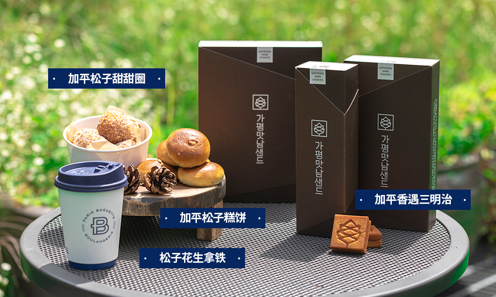 巴黎贝甜加平服务区(春川方向)店正在限量销售使用加平特产松子开发的产品。“加平香遇三明治”是在酥脆的黄油饼干中加入满满的伊斯尼黄油奶油、咸焦糖浆和清淡的加平松子,其香浓的风味和甜蜜的味道堪称一绝。饼干表面刻着象征加平松子的松果图案,打造出高级的外观。每天只销售当场烤制的限量商品,是深受服务区旅客们喜爱的热销商品。将小(5个)、中(10个)、大(15个)共3种尺寸的产品装进高级的包装,不仅可以当作零食,作为礼物也非常合适。
