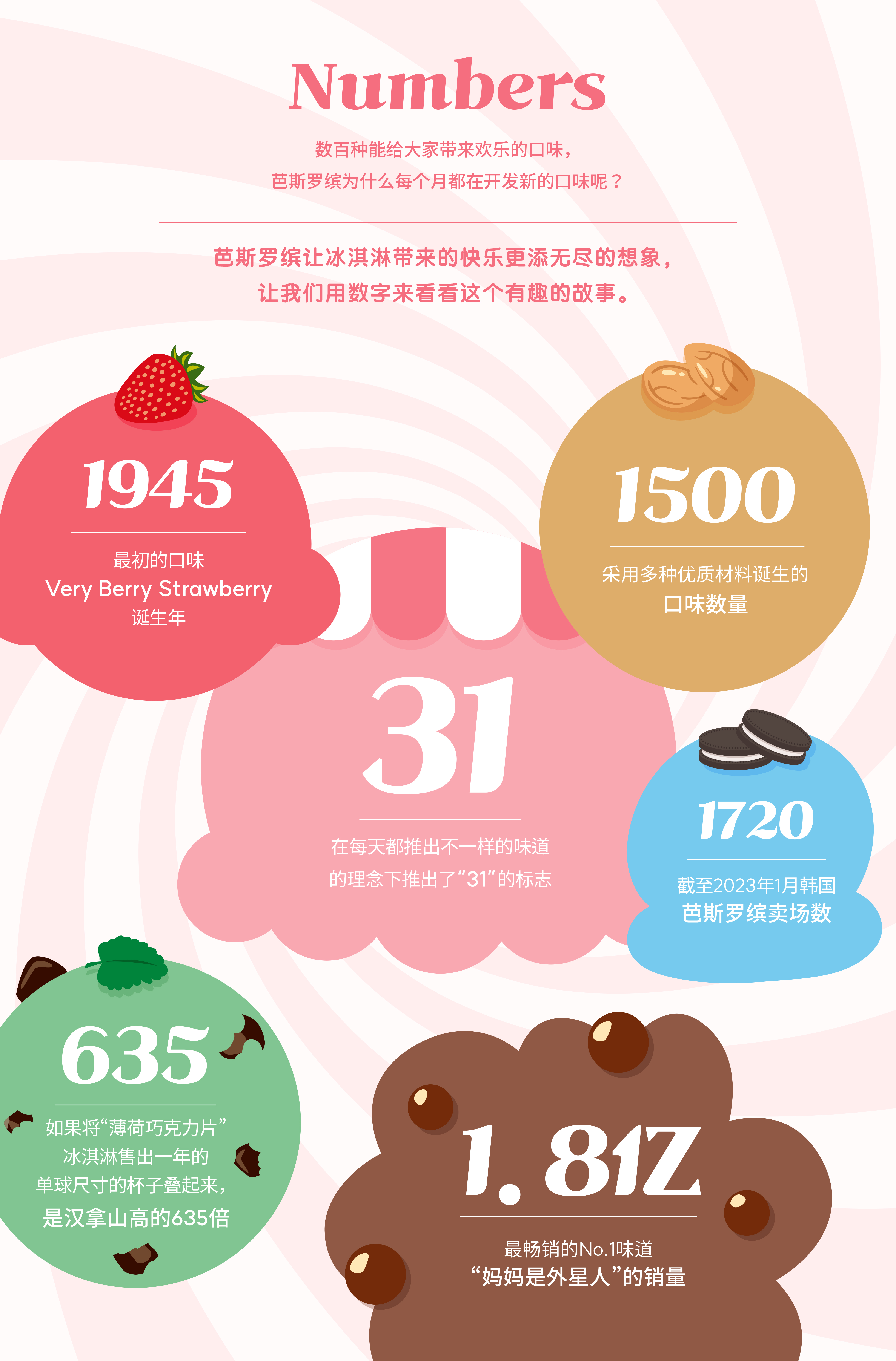 那么,在芭斯罗缤最先诞生的口味是什么呢?那就是“Very Berry Strawberry”。韩国最畅销的口味是什么呢?是2004年推出的“妈妈是外星人”,销量排名第一。从上市到现在,以单球为准,共销售约1.8亿个。