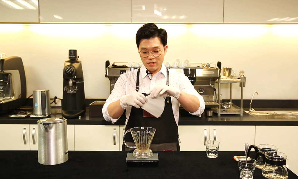 2. ‘클레버 드리퍼’에 종이필터를 크기에 맞게 잘 접어 넣어줍니다.