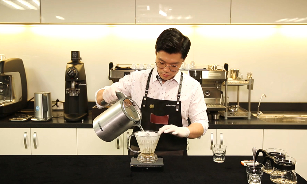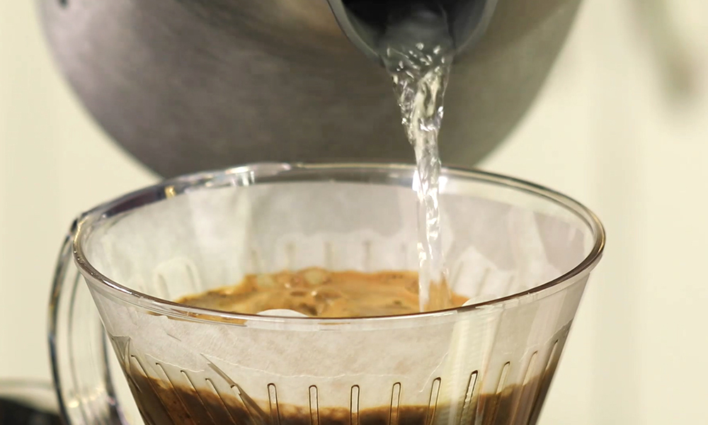 5. 클레버 드리퍼로 3분 동안 침출 방식으로 커피를 추출합니다.