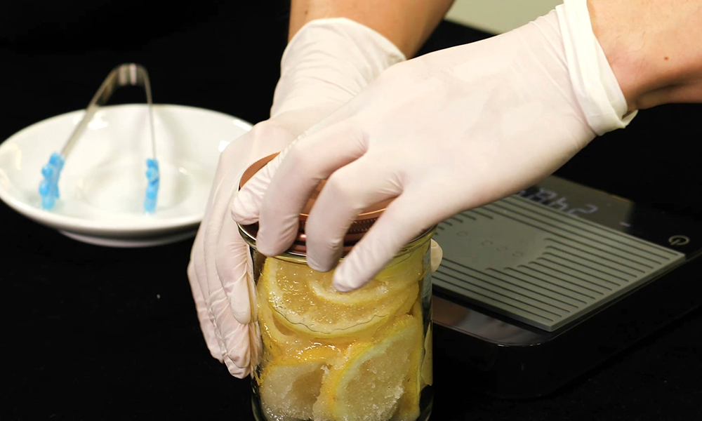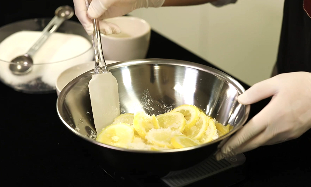 2. 설탕과 섞은 레몬을 깨끗한 병에 담아 상온에서 하루, 혹은 냉장고에서 이틀 간 숙성시켜 주세요.