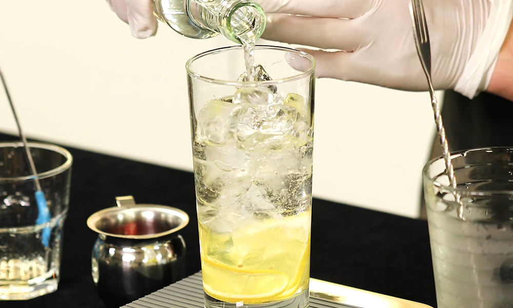 3. 얼음을 담고 탄산수를 넣어줍니다.