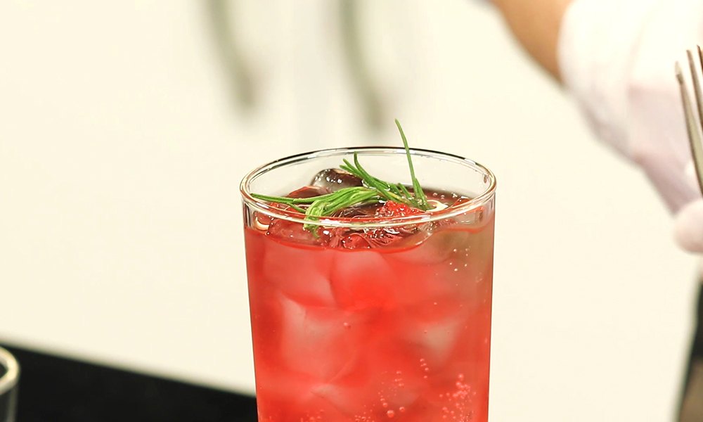 4. 히비스커스 티를 부어주고 기호에 맞게 허브를 얹어주면 완성!