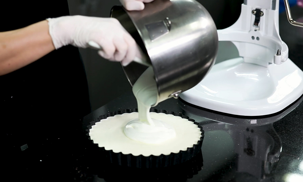 3. 케이크 위를 평평하게 정리하고 냉동고에 3시간 동안 얼려줍니다.