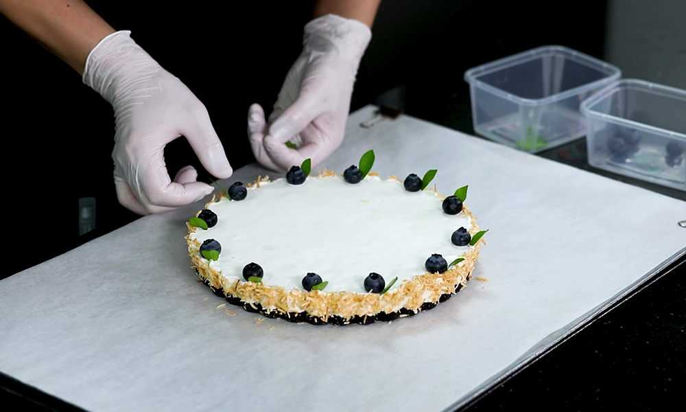 5. 블루베리와 오렌지 쟈스민(orange jasmine) 잎으로 데코레이션 해주면 완성됩니다!