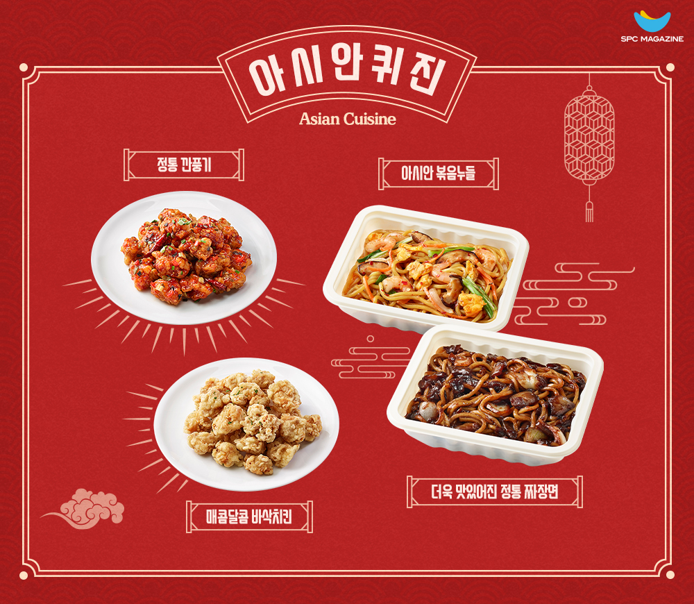 ‘더욱 맛있어진 정통 짜장면’은 쫄깃하고 부드러운 면발에 양파와 돼지고기를 듬뿍 넣어 볶아냈는데요. 유명 중식 셰프의 비법 춘장 소스를 더해 감칠맛이 일품입니다. ‘정통 깐풍기’도 함께 곁들이면 중식당 부럽지 않은 한 상이 차려지는데요. 바삭하게 튀긴 닭고기를 중국식 비법 소스에 버무려 매콤새콤하고 고소한 맛을 냈습니다. 좀 더 이국적인 맛을 찾고 있다면 ‘아시안 볶음누들’은 어떠신가요? 태국에서 즐겨 먹는 매콤달콤한 소스에 쫄깃한 면과 야채, 새우를 함께 볶아 현지의 맛을 그대로 살렸습니다.