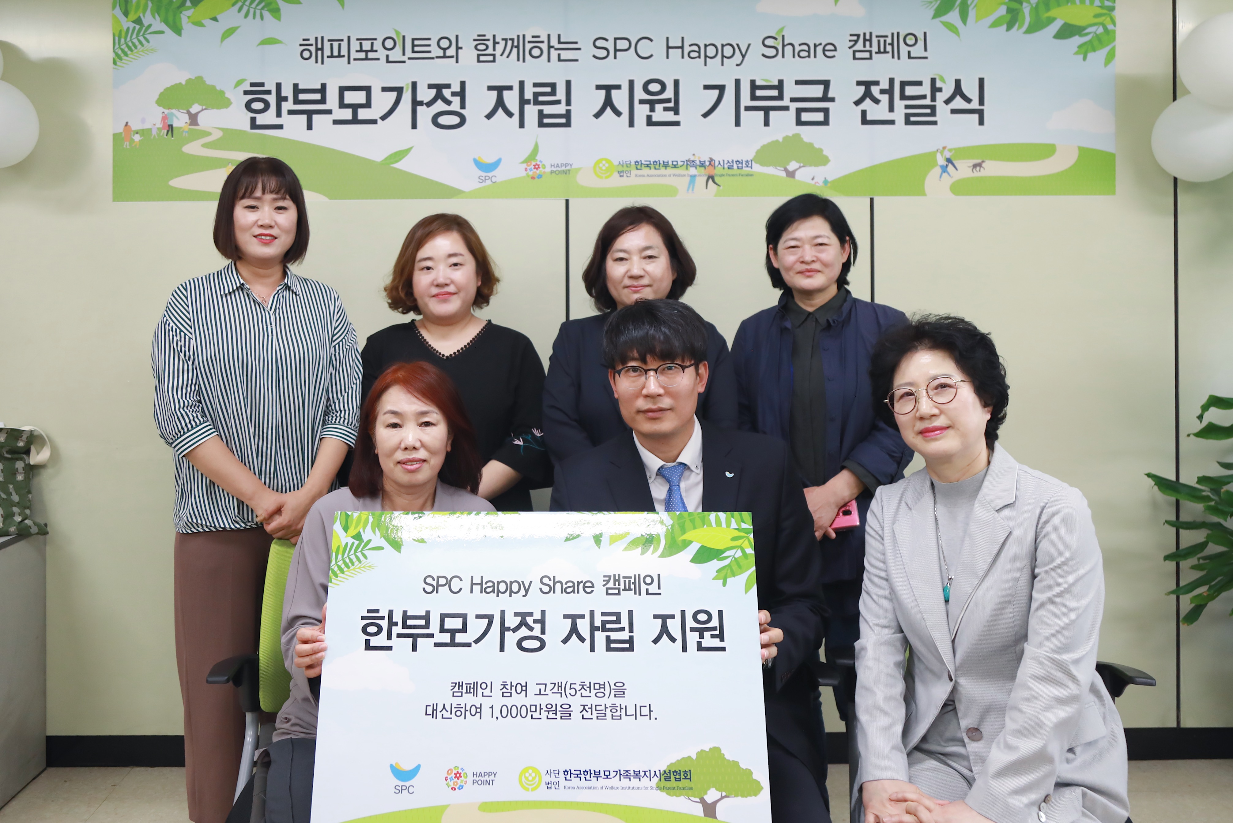 이번 행사는 SPC그룹 디지털마케팅 전문계열사 ‘SPC클라우드’가 운영하는 멤버십 서비스인 해피포인트의해피스토리를 통해 3월 21일부터 4월 21일까지 진행됐으며, 캠페인 시작 20일 만에 5천명의 고객이 참여해 목표액 1천만원 적립이 조기 달성되는 등 큰 호응을 얻었다. SPC행복한재단은 14일 오후 기부금 전달식을 갖고 한국한부모가족복지시설협회를 통해 총 1천만원의 기부금을 한부모가족 5개 가정에 전달했다. 이번 행사를 포함해 SPC행복한재단은 2017년 말부터 3만여 명의 고객 참여로 한부모가족23가정에게 총 5천만원을 전달했다.