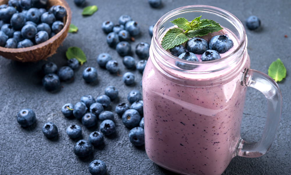 아침에는 장 속 유익균을 활성화하는 유산균을 섭취하는 것이 좋습니다. 쉽게 섭취할 수 있는 요거트를 베이스로 스무디를 만들면 언제든 건강한 라이프스타일을 유지할 수 있는데요. 특히나 요거트는 블루베리와 찰떡궁합을 자랑합니다. 스무디를 만들 때 농후 발효유 요거트 한 컵을 넣어주면, 탱글탱글한 블루베리의 점성과 더해져 소프트아이스크림처럼 부드러운 식감을 만들 수 있는데요. 기분 좋은 달콤함이 잠시나마 지친 몸을 달래줄 거예요.