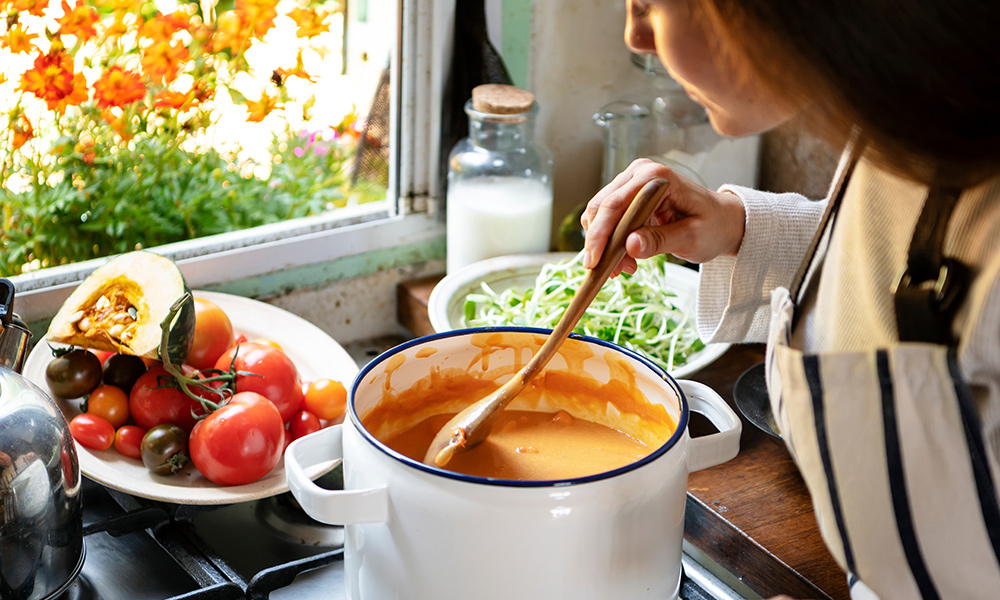 하루를 마무리하는 저녁에는 수프와 함께 해보세요. 냉장고에 있는 야채를 넣고 천천히 끓이면 몸과 마음을 포근하게 녹이는 수프가 됩니다. 수프를 끓인 후 빵을 작게 뜯어 넣으면 든든한 한 끼로도 제격인데요. 따뜻한 수프의 온기를 느끼며 하루를 편안하게 마무리해 보세요.