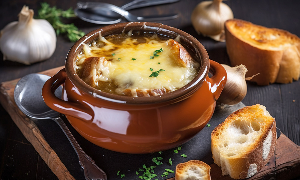 미식의 나라 프랑스에서 소울푸드로 사랑받는 음식이 바로 어니언 수프입니다. 어니언 수프는 가정마다 레시피의 종류가 모두 달라 무궁무진한 매력을 지니고 있는데요. 프렌치 어니언 수프를 만들기 위해서는 먼저 양파를 채 썰어 소량의 물을 넣고 약불에서 볶으면서 익혀줍니다. 수분이 빠지면서 연한 갈색이 날 무렵 버터 한 조각을 넣고, 갈색이 진해지면 물 한 컵을 넣은 뒤, 소금을 넣으면 완성입니다. 집에서 직접 만들어 정성이 들어간 만큼 더욱 진한 기쁨을 느낄 수 있습니다.