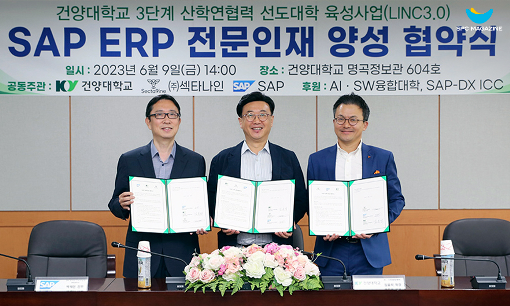 SPC는 올해 6월, 건양대학과 한차례 산학 협력을 맺었습니다. SPC그룹의 IT 서비스 및 토탈 마케팅 솔루션을 담당하는 섹타나인이 시스템 소프트웨어 개발 기업 SAP코리아와 건양대학교 기업AI·SW융합대학과 만나 ‘소프트웨어(SW) 인재육성 및 저변 확대를 위한 업무협약(MOU)’을 체결한 것인데요. 이번 협약을 통해 섹타나인은 소프트웨어 인력을 양성하기 위한 교육 프로그램을 SAP코리아와 공동 개발하고, 건양대 기업소프트학과 학생들을 대상으로 실무 교육을 진행하게 됩니다.