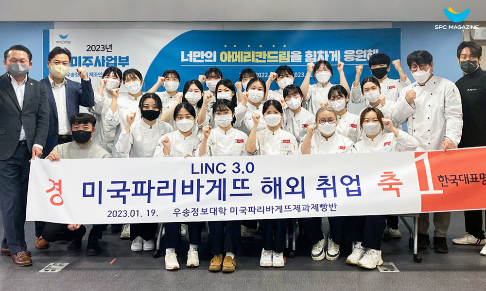 SPC는 산학 협력을 통해 글로벌 일자리 창출에도 앞장서고 있습니다. 2018년부터 파리바게뜨와 우송정보대학이 진행하는 ‘해외 채용 연계 프로그램’은 우송정보대학에서 운영하는 ‘미국 파리바게뜨 제과제빵반’ 학생들에게 직무 교육을 제공하고, 매년 15~20명의 학생을 파리바게뜨 미국 법인에 취업 연계하는 프로그램인데요.