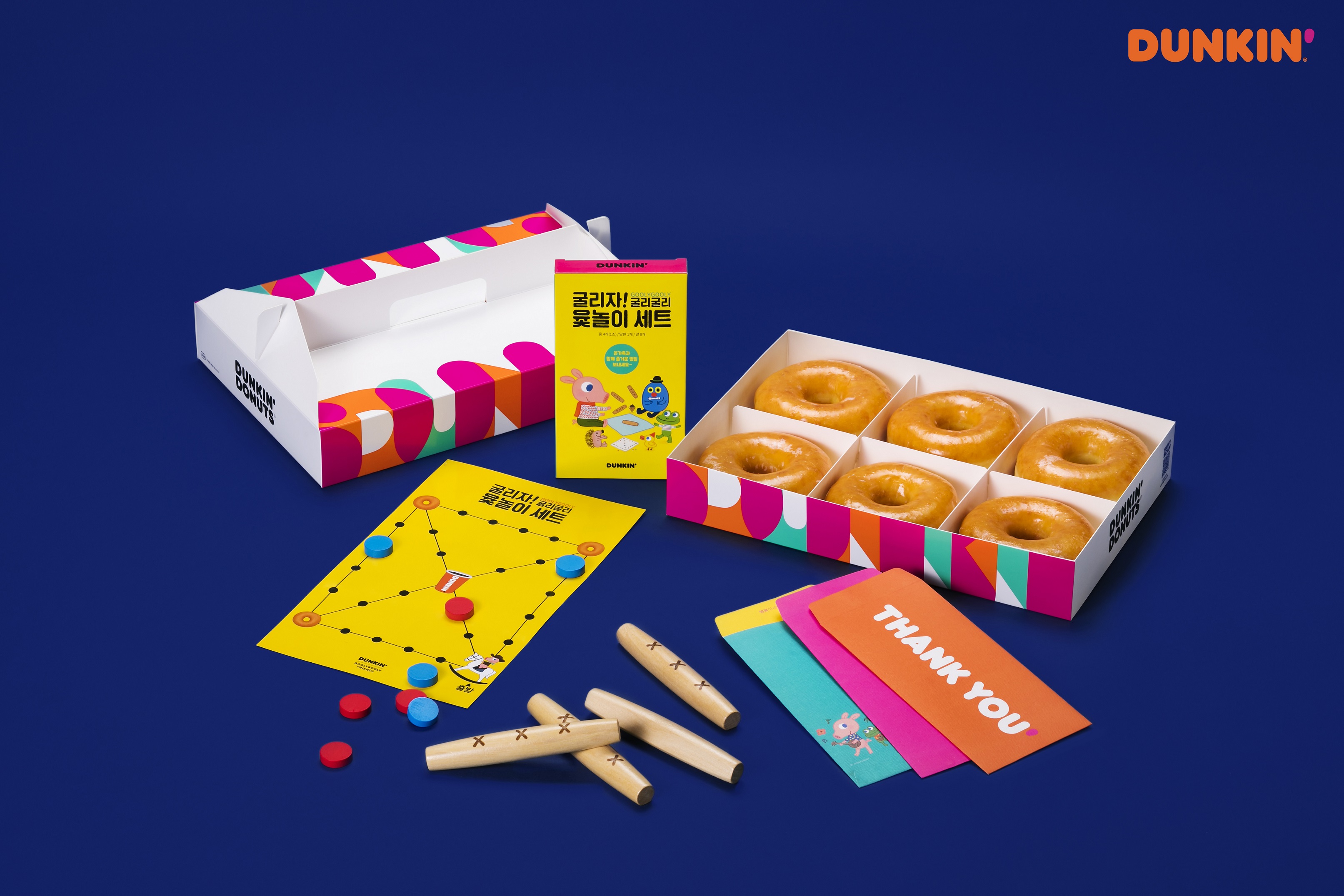 ‘먹고 신나팩’(4,300원)은 던킨 글레이즈드 6개를 2,300원 할인된 가격에 구입할 수 있는 제품이다. 촉촉하고 부드러운 글레이즈드 도넛과 함께, 응원과 감사의 문구가 적힌 기프트 봉투가 함께 들어있다. ‘먹고 노는팩’(5,900원)은 ‘먹고 신나팩’ 구성에 별도 제작한 ‘굴리굴리 윷놀이 세트’를 추가한 선물 세트다. 귀여운 굴리굴리 캐릭터들과 함께 즐기는 윷놀이 디자인이 특징이다. 도넛팩 2종 판매는 1월 31일부터 진행된다.(기프트 봉투는 한정 수량만 증정, 점포별 소진 시점 상이)