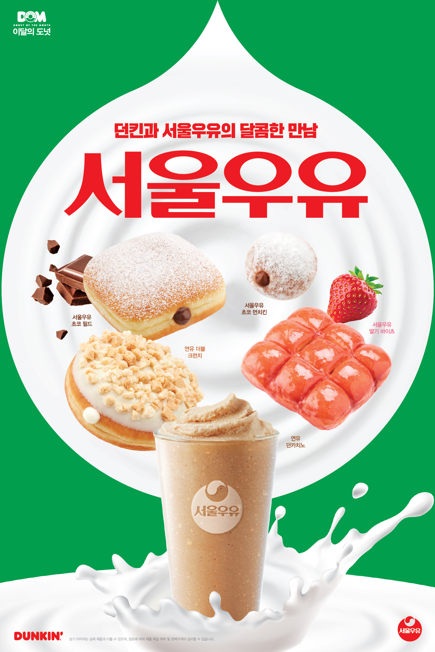 이달의 음료로는 서울우유 연유와 얼음, 우유를 블렌딩한 아이스 커피 음료 ‘연유 던카치노’를 출시했다. 진한 커피 향과 연유의 고소하고 달콤함이 조화를 이루는 시원한 음료다. 던킨도너츠는 신제품 출시를 기념해 ‘서울우유 도넛 프로모션’을 진행한다. 오는 7일부터 10일까지 먼치킨을 제외한 서울우유 도넛 3종과 던킨 글레이즈드로 구성된 ‘서울우유 도넛(6개입)’을 6,900원에 제공하는 행사다. 이와 함께 같은 기간 먼치킨 20개 구매 시 1,100원 할인된 6,900원에 판매하는 ‘먼치킨 팩 10+10 프로모션’도 진행한다. (일부 매장 제외, 자세한 사항 홈페이지 참조)