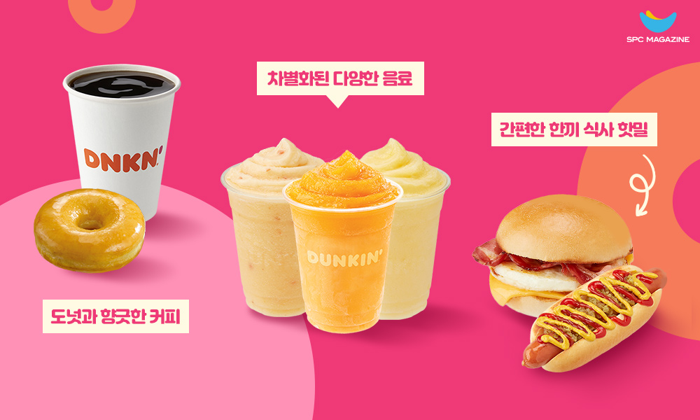 던킨에서 만나볼 수 있는 다양한 도넛과 커피, 음료, 간편한 식사 메뉴