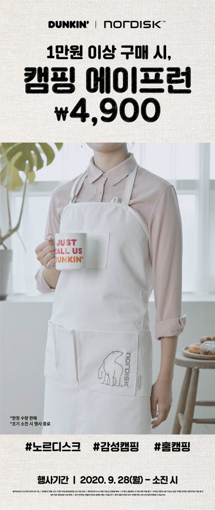 – 던킨 제품 1만 원 이상 구매 시, ‘캠핑 에이프런’ 4,900원에 판매