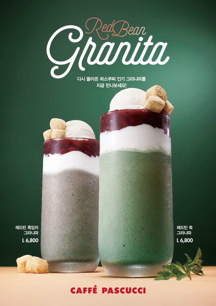 올해 출시한 ‘레드빈 흑임자 그라니따’는 고소한 흑임자와 고운 우유 얼음에 달콤한 크림을 더한 아이스 음료다. 지난 2012년 출시해 인기를 얻었던 메뉴로 판매 종료 후 지속적으로 소비자들의 재출시 요청이 이어져, 크림과 인절미 토핑을 더하는 등 업그레이드해 선보였다. 이와 함께 향긋한 쑥을 활용한 ‘레드빈 쑥 그라니따’도 판매한다.