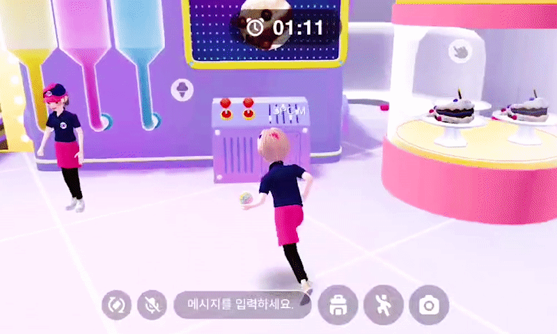 열심히 모은 미션 플레이버를 머신에 투입하면 먹음직스러운 아이스크림 케이크가 완성되는데요. 아이스크림 케이크 획득을 기념하는 셀카 타임도 가질 수 있습니다. 촬영한 인증샷을 SNS에 업로드하는 기능도 탑재됐는데요. 재미있는 미션을 달성하고 주변 사람들과 메타버스 속 특별한 경험을 공유해보는 건 어떨까요?