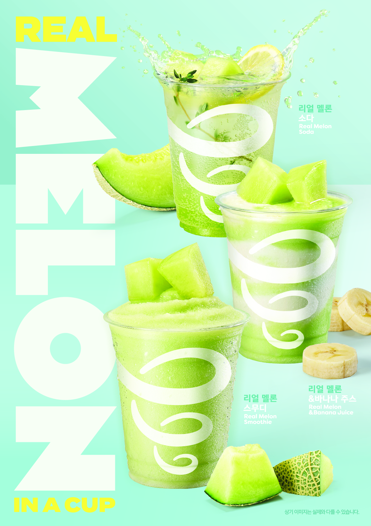 상단부터 잠바주스의 리얼 멜론 소다, 리얼 멜론&바나나 주스, 리얼 멜론 스무디