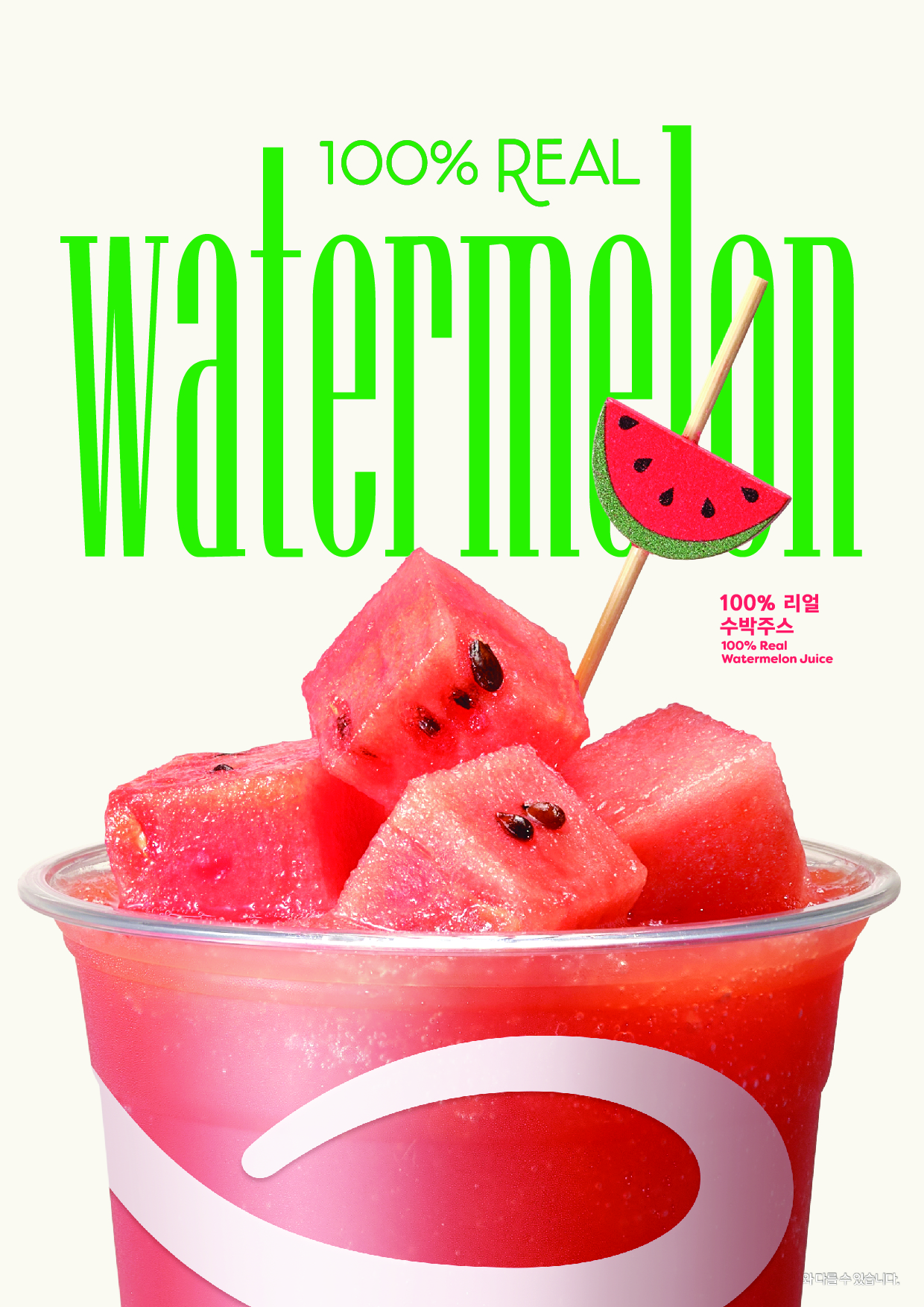 수박 고유의 달콤한 맛과 청량감을 가득 느낄 수 있는 파바표 수박주스! 더운 날씨에 시원하게 즐기기 좋아요.