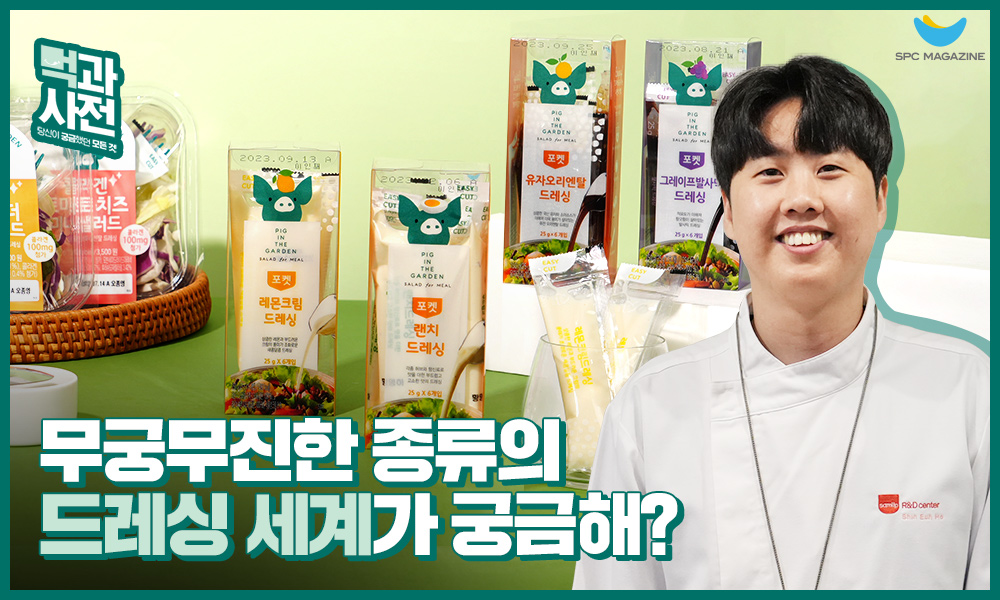 지금까지 피그인더가든과 함께 샐러드 드레싱에 대해 상세히 알아봤는데요. 신선한 드레싱이 탄생하기까지 다양한 시도와 수많은 연구 결과가 뒷받침된다는 것을 확인할 수 있었습니다. SPC는 앞으로도 건강한 먹거리를 개발하기 위해 끊임없는 노력을 기울일 예정인데요. 다음에 이어질 먹과사전 제7화도 더욱 재미있고 풍성한 이야기로 찾아올 예정이니, 많은 기대 부탁합니다.