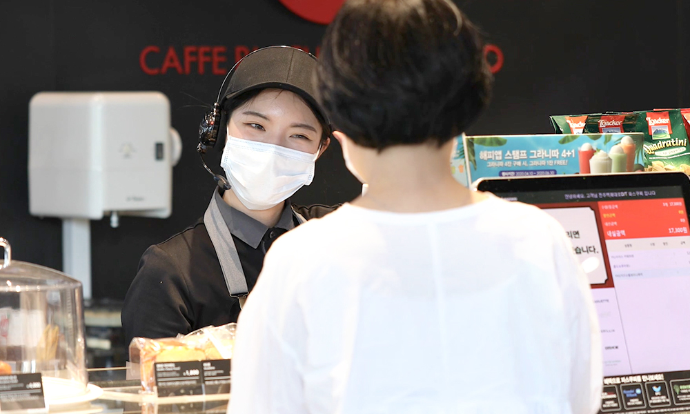 고객을 친절하게 응대하는 파스쿠찌 백제대로DT점 직원