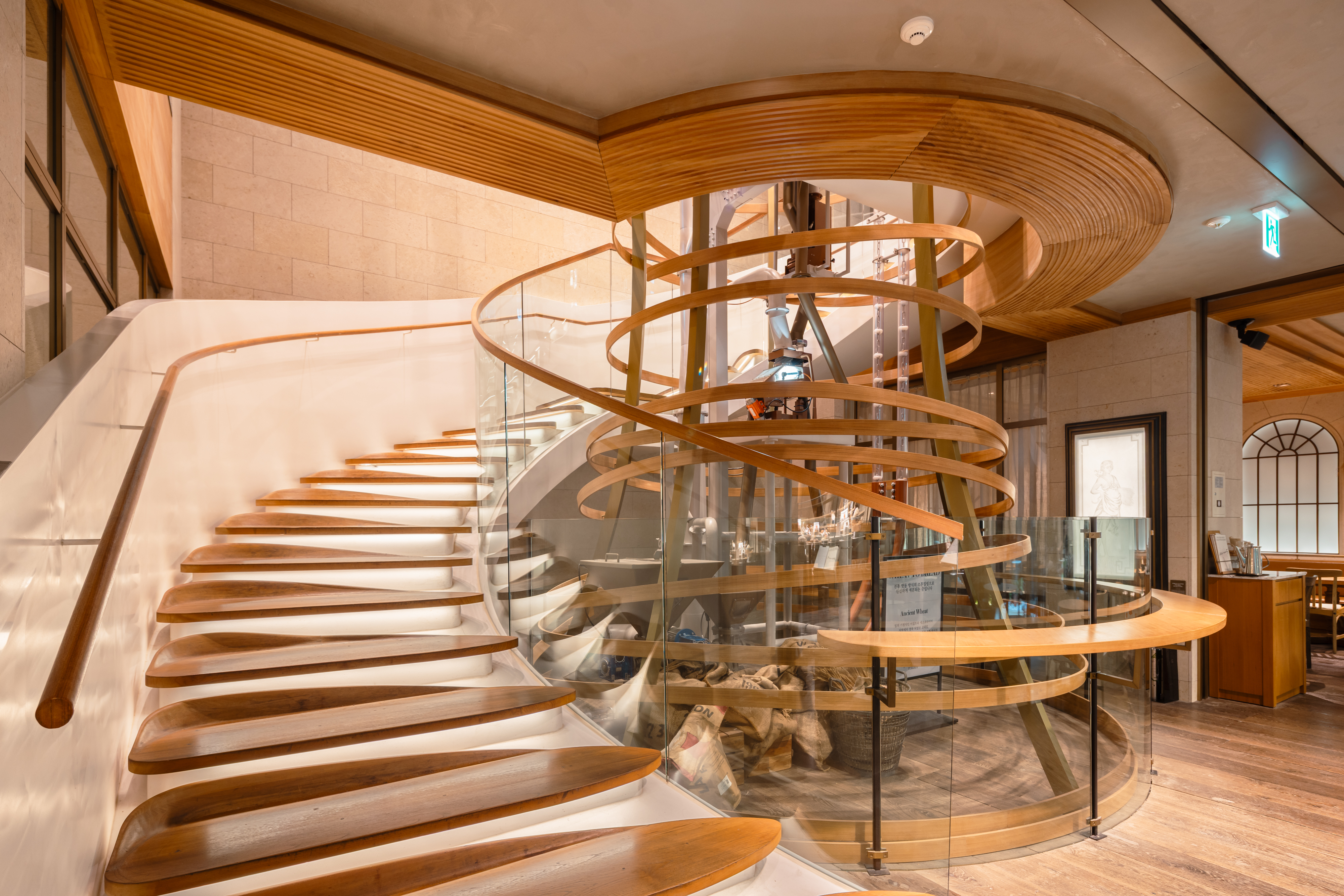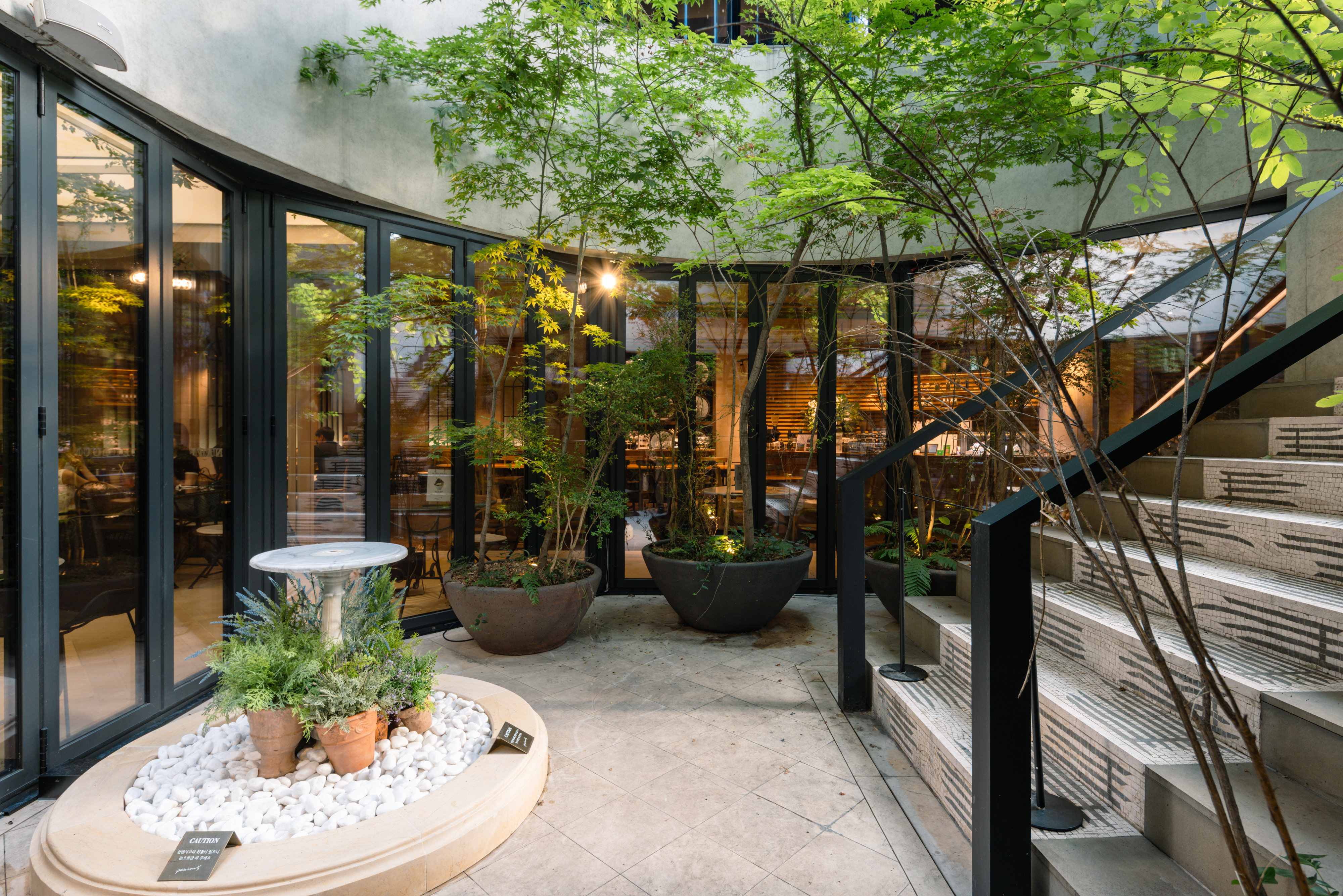 이어 지하 1층 테라스 공간으로 내려가면, 이탈리아 건축가 마르코 루끼(Marco Lucchi)가 설계한 아름다운 공간을 만나볼 수 있습니다.