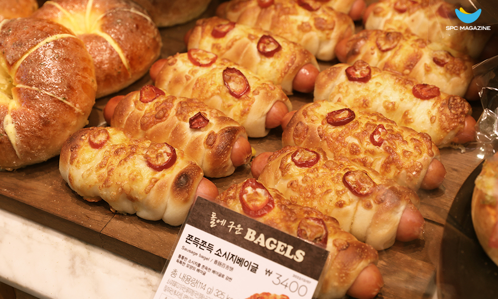 파리바게뜨는 베이글을 더 깊이 있게 연구하기 위해 지난해 12월, 서울 강남구 테헤란로에 위치한 ‘선릉아이타워점’을 베이글 특화 매장이자 연구소 역할인 ‘베이글 랩(LAB)’으로 리뉴얼 오픈했습니다. 베이글 랩(LAB)에는 기본 베이글 외에도 베이글에 햄, 치즈, 옥수수가 올라간 ‘햄치콘 듬뿍 베이글피자’와 두툼한 소시지가 들어가 소시지빵의 모습을 한 ‘쫀득쫀득 소시지베이글’, 잠봉뵈르 형태의 ‘잠봉 프로마쥬 베이글 샌드위치’ 등 베이글을 응용한 이색적인 메뉴들을 만날 수 있어 베이글 러버들의 발길을 이끌고 있습니다.
