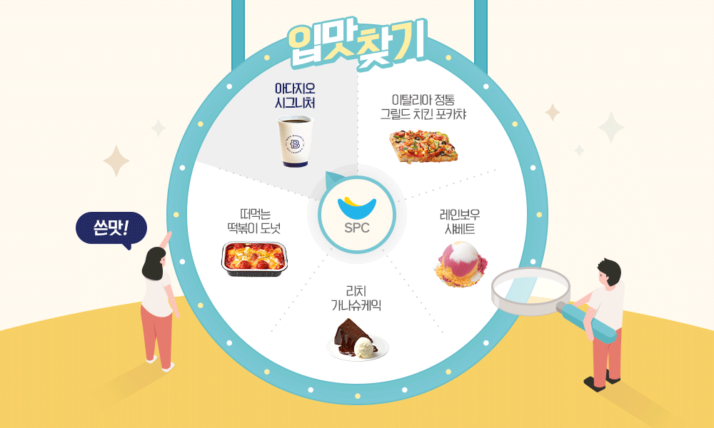 봄이 오면 늘어나는 외부 활동으로 우리 몸의 신진대사가 활발해집니다. 하지만 따뜻해진 날씨 탓에 몸이 나른해지고 입맛도 잃기 십상인데요. 여러분의 몸을 깨워드리고자 다섯 가지 맛이 담긴 룰렛을 준비했습니다. 쓰고, 달고, 맵고, 시고, 짠 다섯 가지 맛 중에서 여러분의 맛을 골라보세요!
