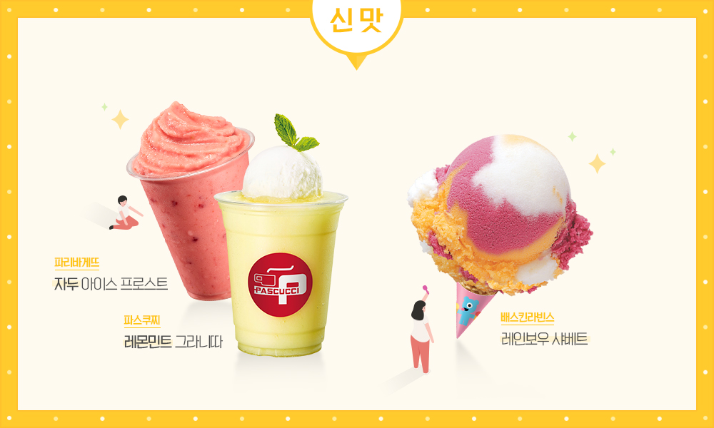 상큼함의 결정체를 찾으신다면 배스킨라빈스의 새콤달콤한 ‘레인보우 샤베트’가 있습니다. 파인애플, 오렌지 그리고 라즈베리까지 상큼한 열대과일을 한 번에 맛볼 수 있는 이 조합은 입맛 없는 봄철에 더 생각나는 제품입니다.