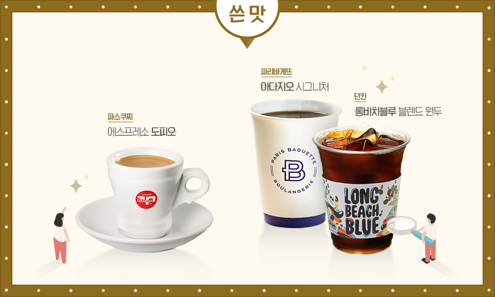 쓴맛을 선택하셨나요? 커피 한 잔으로 활기찬 아침을 맞이해보세요. 파리바게뜨의 ‘카페 아다지오 시그니처’는 다크 초콜릿의 진한 향미가 긴 여운으로 남는 다크로스팅(dark roasting) 커피입니다. 국내에서 로스팅 후 7일간 숙성한 원두를 사용해 깊고 풍부한 맛이 인상적인데요. 특히 원두 본연의 깊고 풍부한 아로마가 최상인 상태로 맛볼 수 있도록, 로스팅 후 단 7일 간만 판매되어 더 신선하고 깊은 맛을 느끼실 수 있습니다.