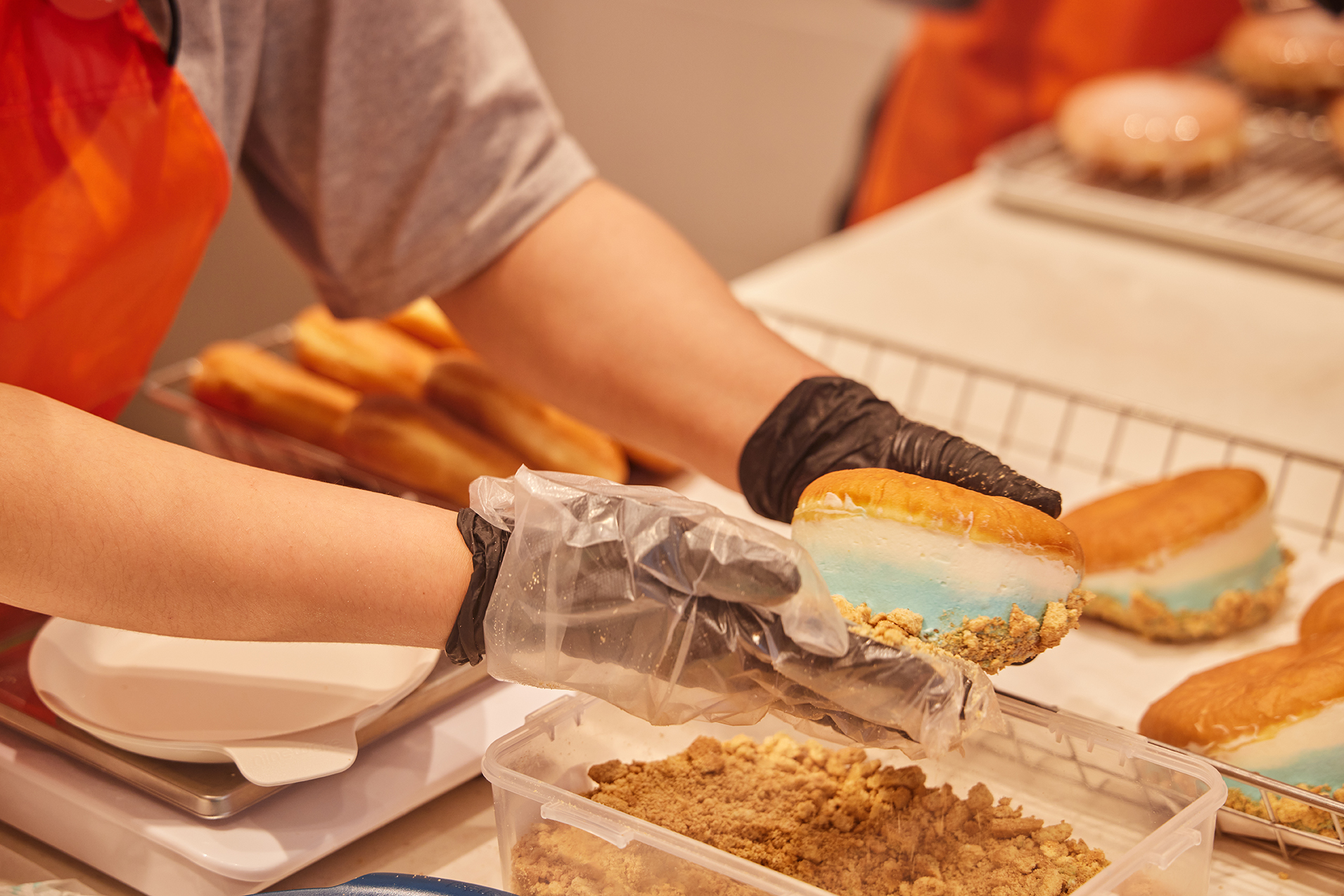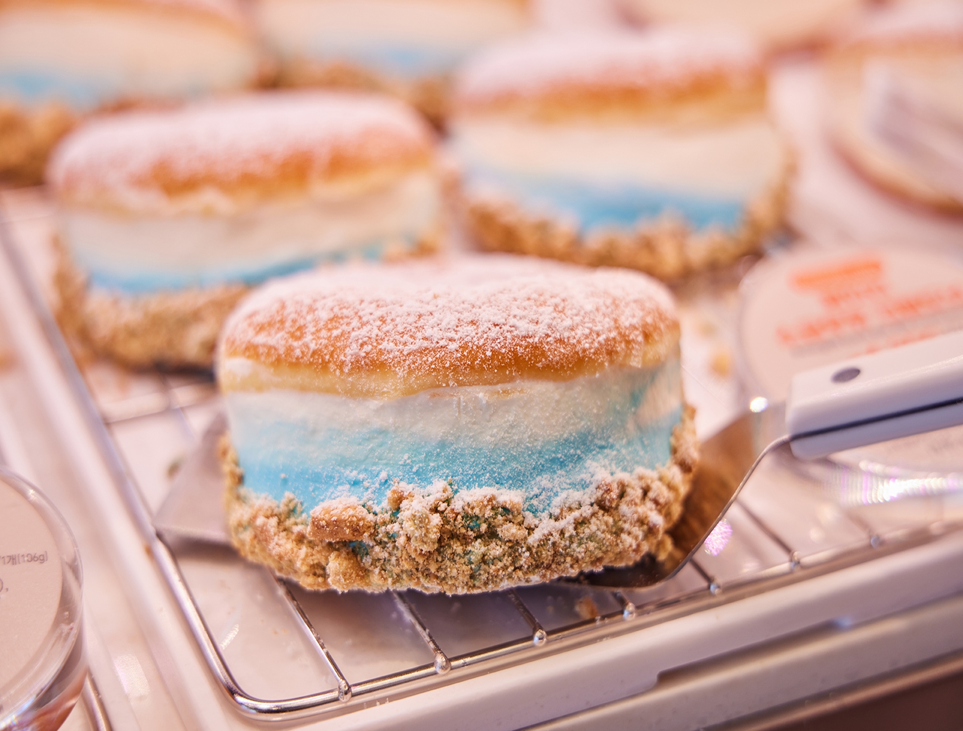 눈을 사로잡는 영롱한 바다 빛깔 크림!🌊 광안리의 푸른 바다를 도넛에 담았어요. ‘광안리 소금우유 크림도넛’은 부드러운 도넛 안에 그득히 품은 크림은 단짠단짠 조합으로 느끼하지 않고, 마치 해변 모래 같은 쿠키 크럼블이 풍부한 맛을 선사한답니다.👀
