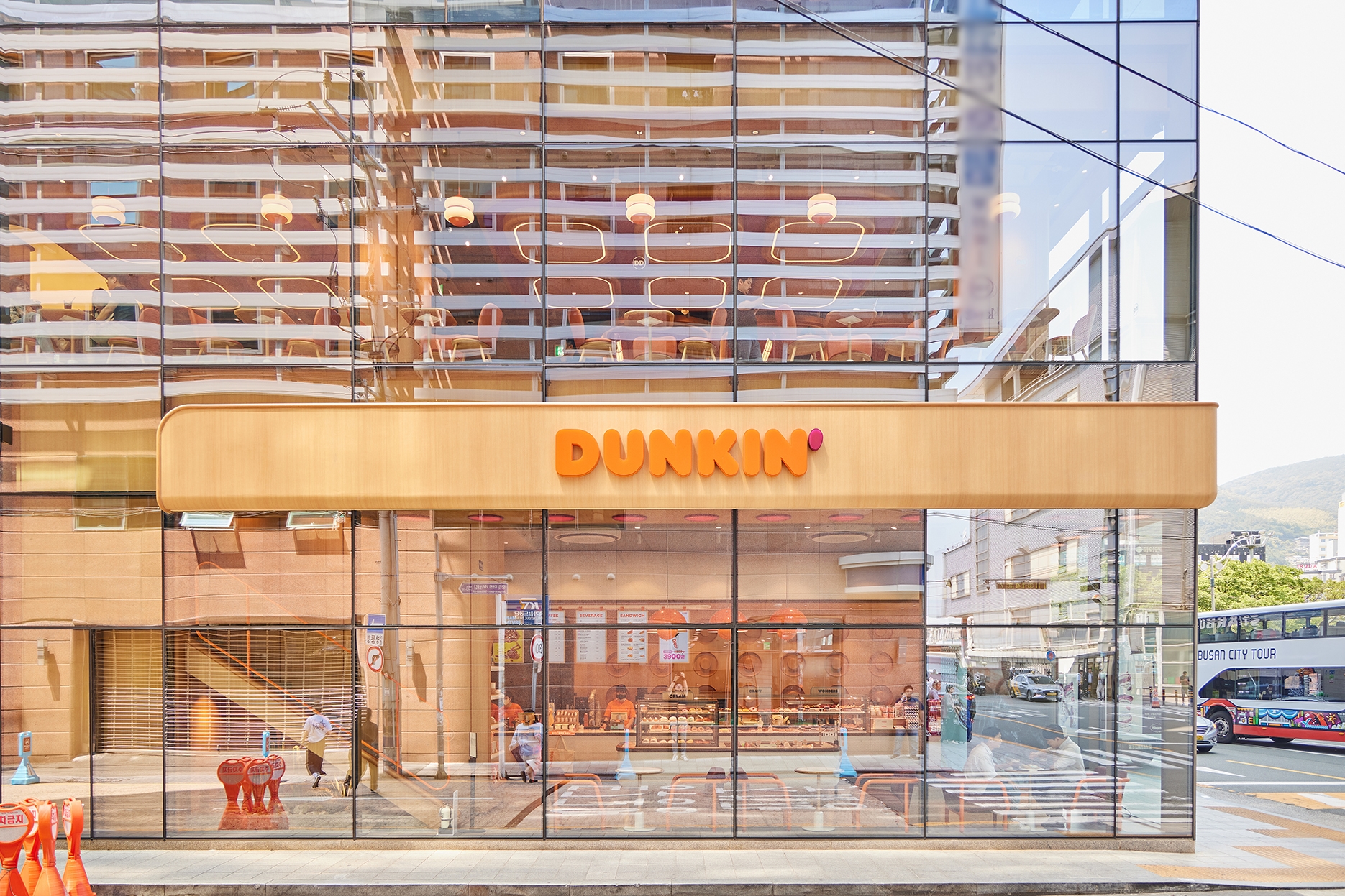 오직 부산역 라마다점에서만 맛볼 수 있는 시그니처 메뉴와 시야가 확 트이는 매장 전경, 리뉴얼로 만들어진 쾌적한 인테리어를 꼽을게요. 특히 밤에 보이는 던킨 매장의 풍경은 정말 예뻐요.