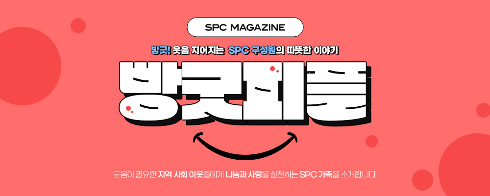 주변에 사랑과 나눔을 몸소 실천하는 SPC 가족이 있다면 spcmagazine@spc.co.kr로 제보해 주세요. 따뜻한 이야기를 기다리겠습니다.
