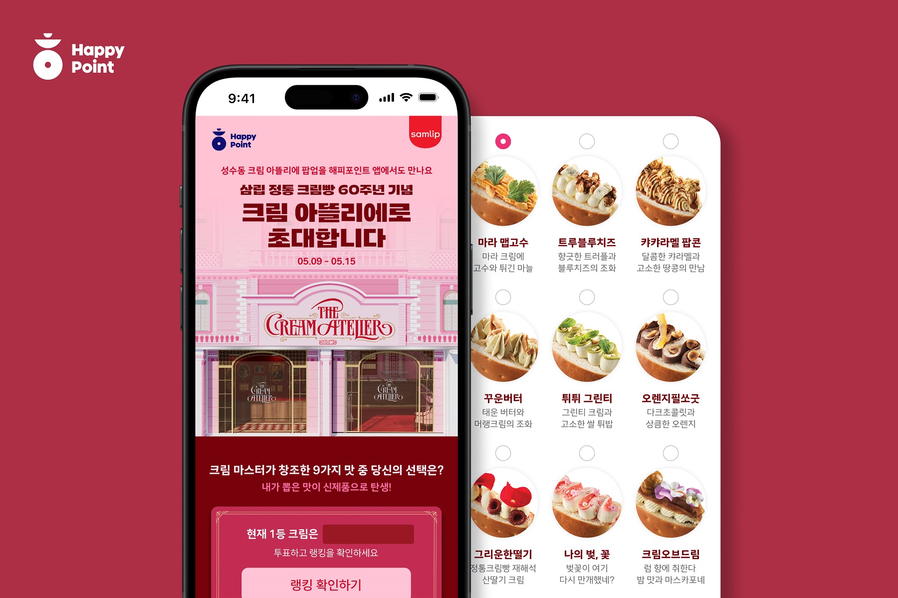 이번 팝업스토어에서는 9가지 레시피의 크림을 선보이고 방문 고객이 맛보고 싶은 크림 3가지를 직접 맛보고 선호하는 맛을 투표하는 이벤트를 진행했다. 현장에서 가장 많은 선택을 받은 크림은 꾸운버터(휘낭시에 크림), 오렌지필쏘굿(오렌지필&초코 크림), 그리운한떨기(로즈&산딸기 크림) 순으로 나타났다. 9일부터 15일까지 해피포인트 어플리케이션에서 진행해 약 6만 5천명이 참여한 온라인 투표 결과를 종합적으로 합산해 선정된 인기 크림은 ‘꾸운버터(휘낭시에크림)’로 6월 중 크림빵 신제품으로 출시될 예정이다.