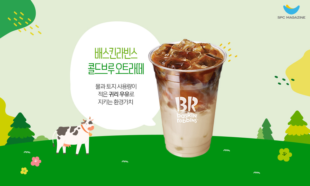 배스킨라빈스는 오트밀크(귀리우유)를 활용한 콜드브루 오트라떼를 판매 중인데요. 콜드브루 커피와 오트밀크가 어우러진 고소하고, 깔끔한 맛으로 인기가 많은 음료입니다. 이 제품에 활용된 오트밀크는 귀리를 갈아 물과 섞어 만들어진 식물성 대체 식품인데요. 유당 분해 효소가 없어 우유를 섭취할 수 없던 이들도 섭취할 수 있는 식물성 우유라는 점에서 많은 이들에게 주목받고 있습니다. 귀리는 물과 토지사용량이 적다는 장점도 가지고 있어 환경적 가치를 중요하게 여기는 가치소비자들에게도 인기가 많죠. 배스킨라빈스에서는 모든 커피 메뉴에 들어가는 우유를 오트밀크로 변경할 수 있는 추가옵션도 제공하고 있습니다. 오트밀크를 활용한 음료는 배스킨라빈스 외에도 SPC그룹의 브랜드 파스쿠찌와 던킨에서 만나보실 수 있어요.