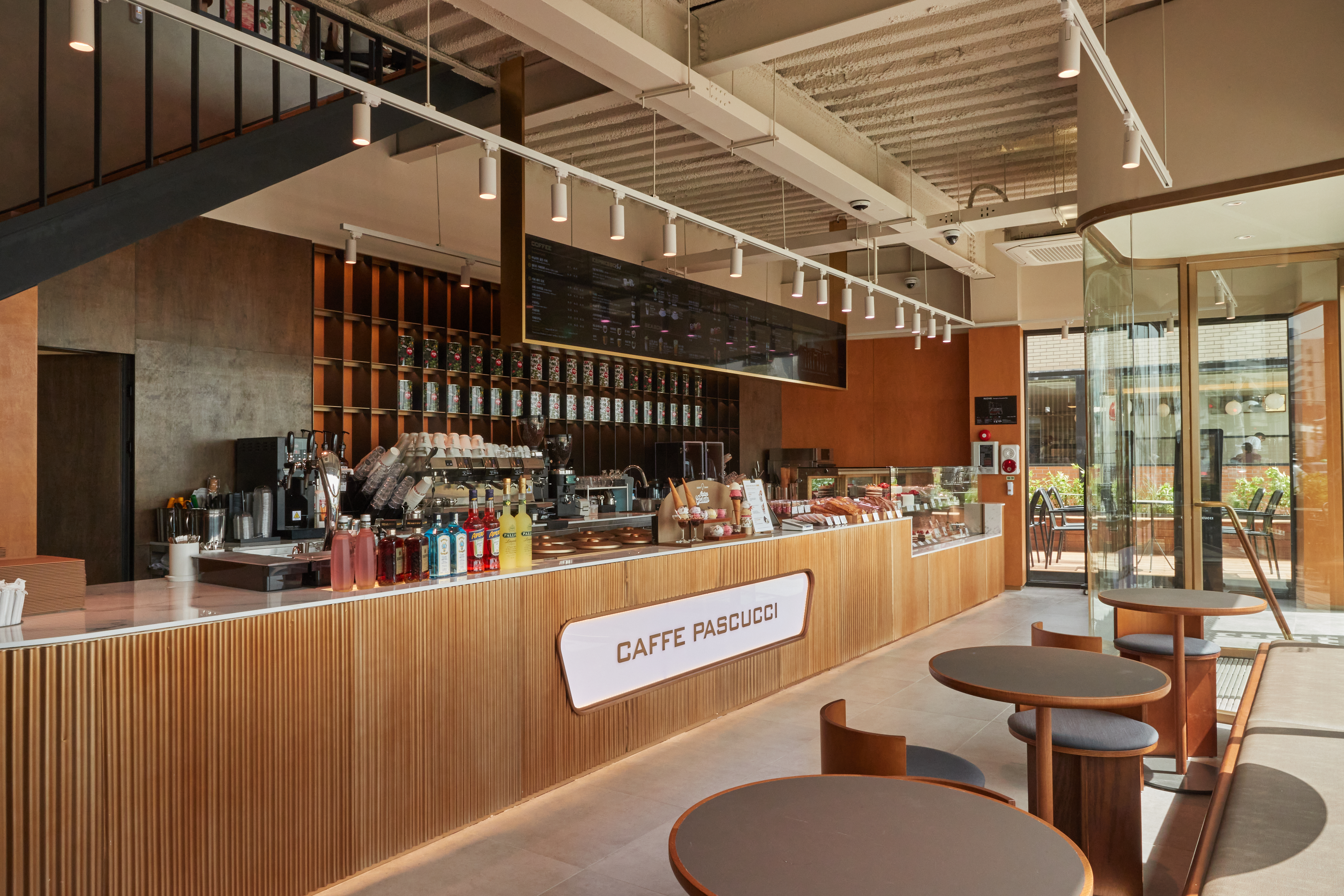 ‘Caffé’라는 단어를 생략한 이유는, 파스쿠찌의 공간 자체가 이미 카페 역할을 하고 있기 때문이에요.