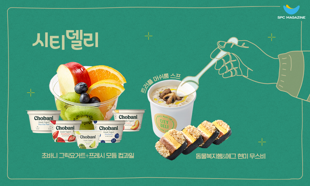 시티델리는 매일 신선한 제품을 고객들이 건강하게 먹을 수 있도록 다양한 음식을 선보이고 있습니다. ‘트러플 머쉬룸 스프’는 따뜻한 스프로 포만감은 채우면서 트러플이 가진 향을 느낄 수 있어 여유로운 한 끼가 가능한데요. 양송이 스프에 토핑으로 추가되는 구운 양송이와 트러플오일로 버섯이 가진 풍미를 한층 더 풍부하게 느낄 수 있습니다. ‘동물복지햄&에그 현미 무스비’는 동물복지로 더욱더 신선하고 건강한 햄에 계란과 현미밥을 더해 풍성한 식감과 맛을 자랑하는데요. 양은 적지만, 탄수화물과 단백질의 조화로 한 끼 식사로 거뜬합니다. ‘초바니 그릭요거트+프레시 모듬 컵과일’은 미국 그릭요거트 시장 1위 브랜드 ‘초바니 그릭요거트’를 신선한 과일과 함께 먹는 메뉴인데요. 무지방 플레인 그릭요거트로 과일 본연의 맛을 그대로 맛보는 것도 좋고 딸기, 블루베리, 복숭아, 라임 등 4종의 그릭요거트를 선택해 다양한 맛으로 즐겨보세요.