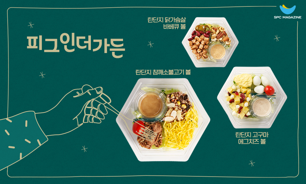 SPC그룹의 대표 샐러드 브랜드 피그인더가든은 최고의 전문가들이 다양한 종류의 샐러드로 균형 잡힌 맛과 영양을 제공하고 있습니다. 최근 건강을 위해 샐러드로 식사를 즐기는 현대인들이 늘어나면서 탄수화물, 지방, 단백질로 완벽 밸런스를 맞춘 ‘탄단지 볼샐러드 시즌 2’가 큰 인기를 끌고 있는데요. ‘탄단지 고구마에그치즈 볼’은 큼직한 계란 원물을 에그스쿱을 사용해 풍미를 살렸으며, 고구마와 메추리알 토핑으로 포만감을 채울 수 있습니다. ‘탄단지 닭가슴살바베큐 볼’은 닭가슴살에 달콤한 바베큐 소스를 발라 감칠맛을 더했는데요. 여기에 새콤하고 매콤한 할라피뇨를 더한 게 특징입니다. ‘탄단지 참깨소불고기 볼’은 불향을 담은 소불고기와 몸에 좋은 곡물밥으로 구성해 든든한 한 끼를 제공합니다. 세 가지 샐러드 모두 한 끼에 300kcal도 채 되지 않지만, 1일 영양성분 기준치와 대비하여 단백질 함량을 15% 높였는데요. 영양 밸런스를 맞추며 건강한 식습관을 형성하길 원하는 분들에게 추천합니다.