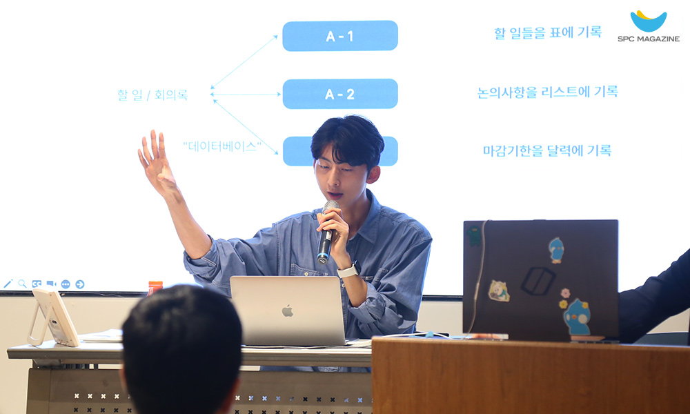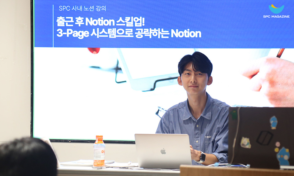 SPC는 회사 구성원들이 업무의 생산성을 높일 수 있도록 전격 지원하고 있습니다. 9월 22일에는 <노션 하나로 정리하는 일과 일상>을 주제로 강연을 진행해 잘 정돈된 일상을 유지하기 위한 노하우를 전달했는데요. 이번 강연은 피플앤컬처팀에서 기획한 사내 노하우 특강의 일환으로 온오프라인으로 동시에 진행됐습니다. 특강을 맡은 주인공은 바로 섹타나인의 멤버십서비스팀 이종휘 프로인데요. 그는 콘텐츠 마케팅 전자책 출간은 물론, 노션 전자책 출간도 앞두고 있는 노션 전문가입니다.