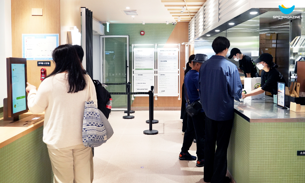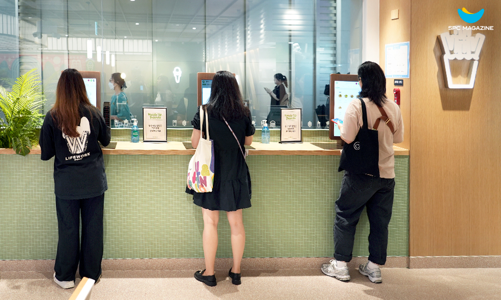 많은 여행객이 몰리는 공항의 특수성을 고려해 빠르고, 간편하게 주문할 수 있도록 한 자동주문시스템인 키오스크 서비스도 눈에 띕니다. 무인으로 운영되어 메뉴 선택 및 결제 시간을 단축할 수 있고, 동시에 매장 입구 왼편에는 초대형 메뉴판을 배치해 키오스크를 어려워하는 고객도 쉽게 메뉴를 확인해 주문할 수 있도록 했습니다.