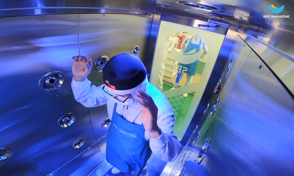 식품안전관리를 위해 철저한 방역 과정을 거치는 SPC 임직원들