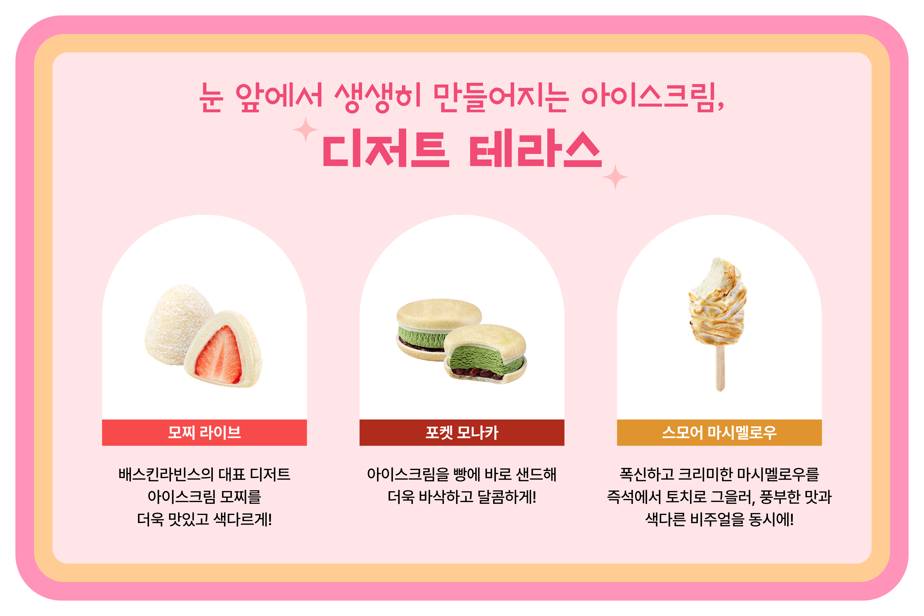 🌟 모찌 라이브 : 배스킨라빈스의 대표 디저트인 아이스크림 모찌를 더욱 색다르고 맛있게 즐길 수 있도록 기획된 제품